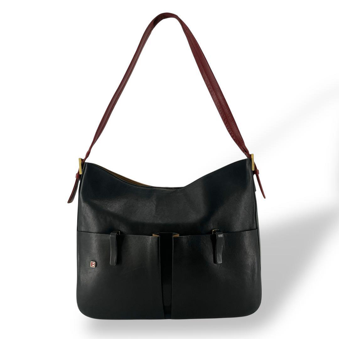- BALLY バリー ワンショルダーバッグ Bロゴ 肩掛け 金具 黒 ブラック 赤 レッド レザー ゴールド金具 ロゴ刻印 ロゴプレート