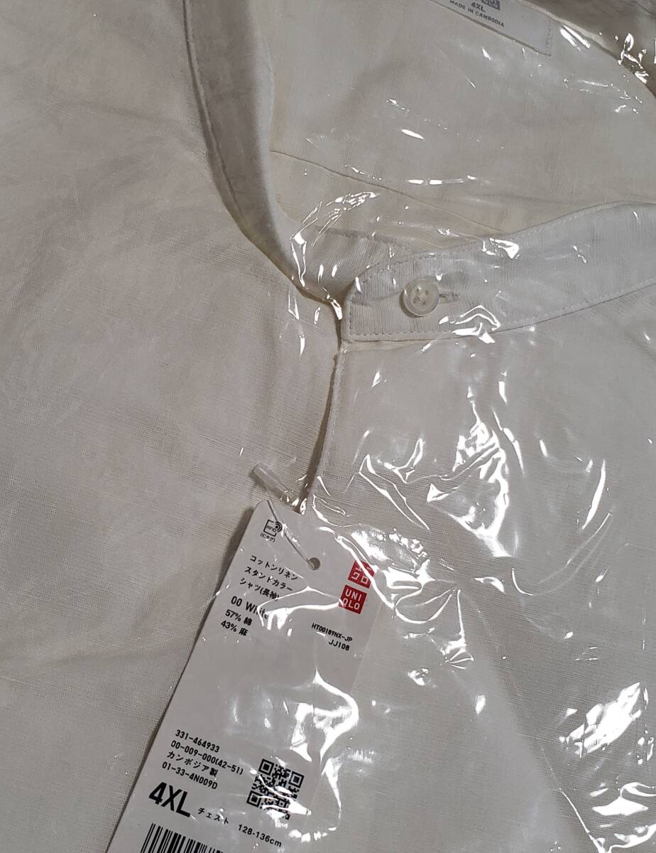 > UNIQLO コットンリネン スタンドカラーシャツ 長袖 ホワイト 4XL 未使用品 ユニクロ オンライン