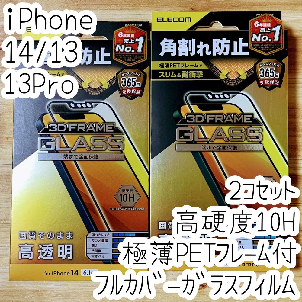 > 2個 iPhone 14・13 Pro・13 強化ガラスフィルム 高透明 高硬度10H 極薄硬質フレーム付き フルカバー 高光沢 全面保護 シールシート 692
