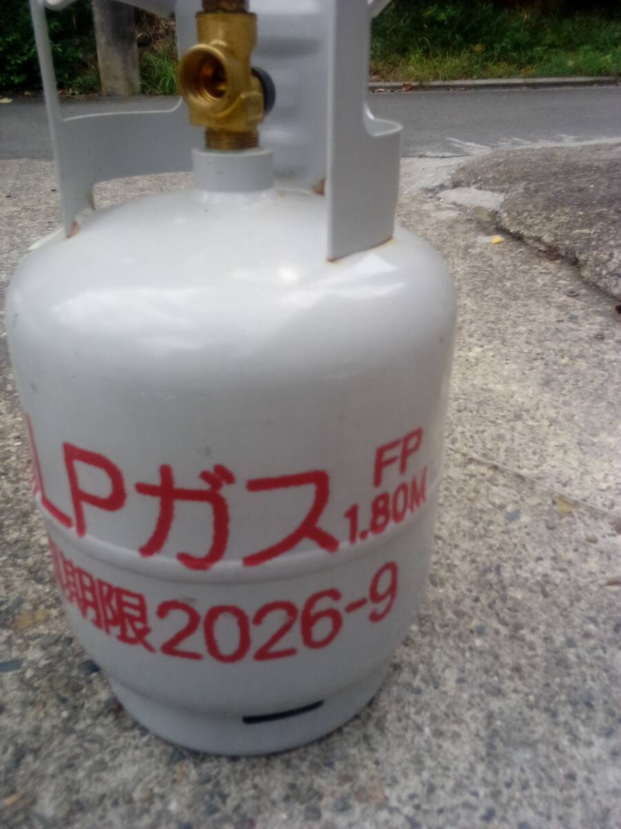 > LPGプロパンガスボンベ、タンク5㎏充填期限2026年9月期限、中古品、キズ薄ら錆あり。キャンプ、キッチンカーや屋台、出店のイベント等A