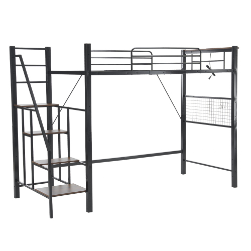 - 【ブラック】 システムベット ロフトベッド シングル コンセント付き 収納付き 耐荷重150kg 高さ173cm 北欧風 スチールネット 耐震 AFD934