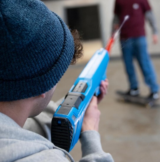 > 水鉄砲 ウォーターガン 水遊び 電動 ブルー シングルショットテクノロジー LEDディスプレイ 飛距離最大8メートル タンクレベルディスプレイ