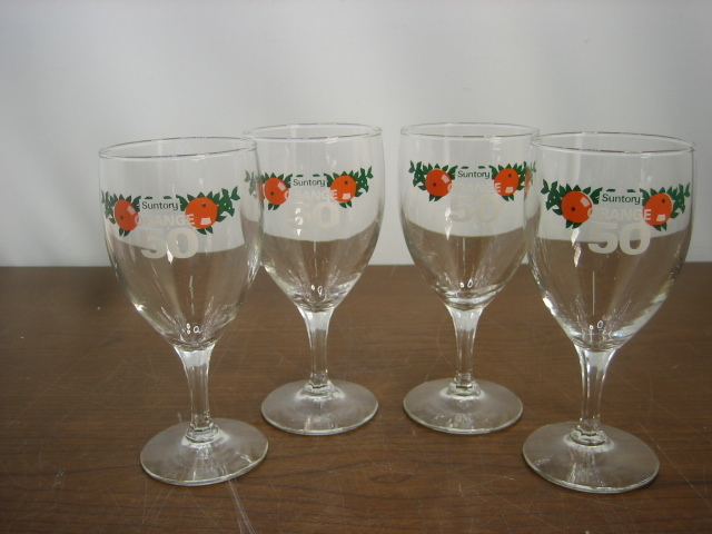 > ◆Suntory サントリー ORANGE50 オレンジ ゴブレットグラス ジュースグラス 4客セット レトログラス 昭和レトロ◆菅-JI