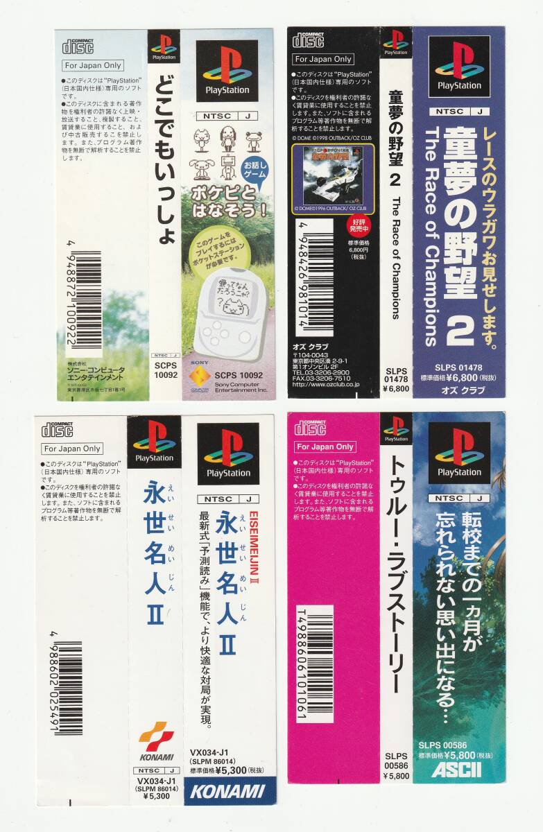 - 「プレイステーション 帯 セット №102」(永世名人Ⅱ、トゥルー・ラブストーリー、どこでもいっしょ、童夢の野望2 TheRace of Champion