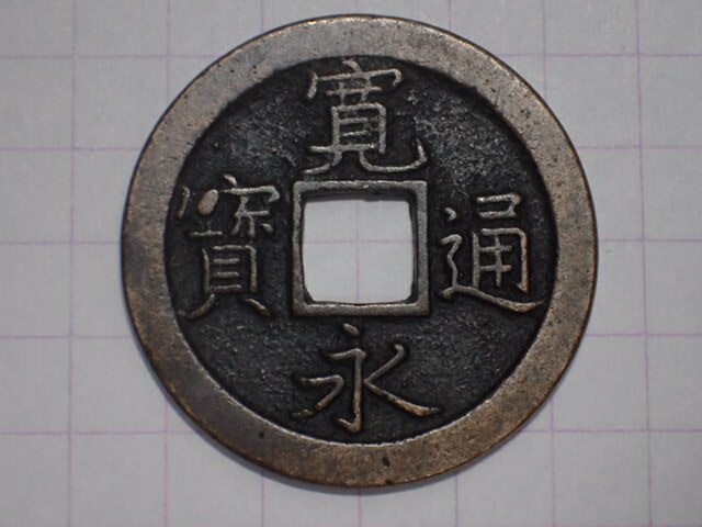- N1-7 正字背文断フ永奇寶 武蔵国江戸亀戸 1668年(寛文期寛文銭) 寛永通宝 文銭 古銭 銅銭 穴銭江戸時代