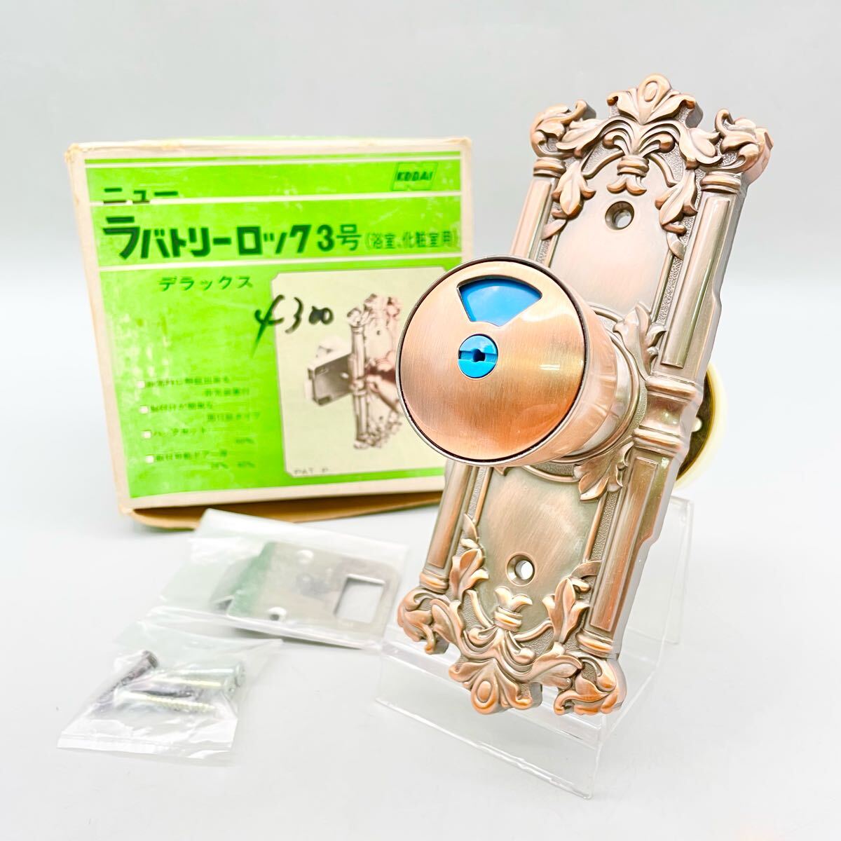 > [新品 未使用品] 古代 ニューラバトリーロック3号 表示錠 BS 60mm 扉厚 28~40mm ブロンズ 建具 アンティーク トイレ 浴室 金物屋 在庫品