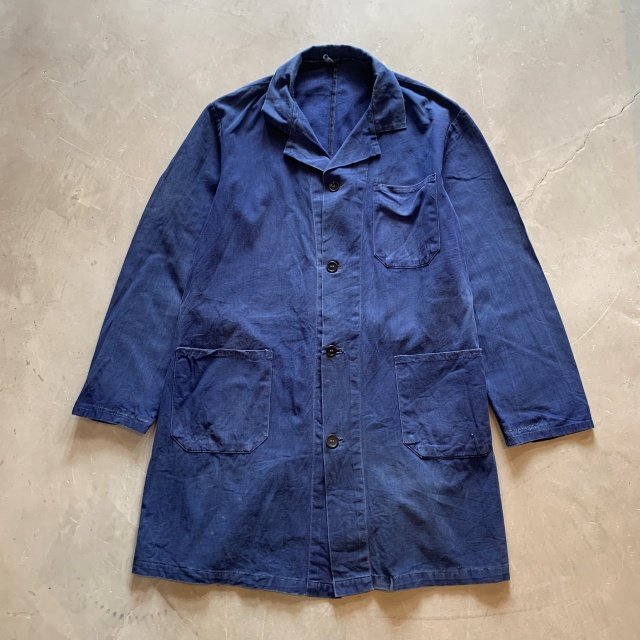 - 【L/XL】ドイツ ユーロワーク HBT ジャケット アトリエコート ブルー■ビンテージ オールド ヨーロッパ古着 コットン フェード フレンチ