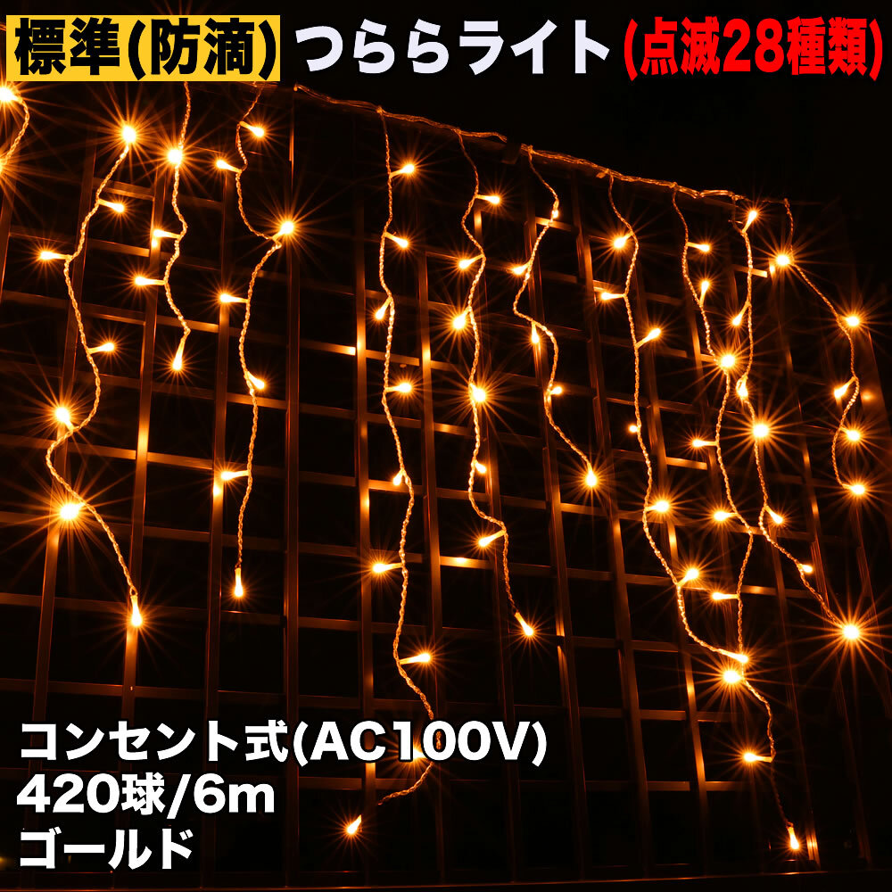 > クリスマス 防滴 イルミネーション つらら ライト LED 6m 420球 ゴールド 28種点滅 Bコントローラセット