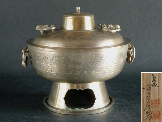 - 京城 海市商会 景福宮南大門光化門彫 蝙蝠飾 神仙炉 共箱 李王家 宮廷料理