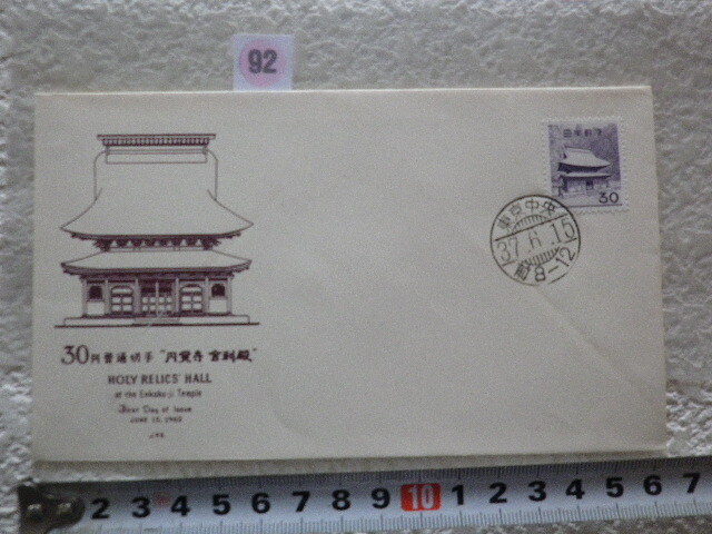 - FDC 普通切手 30円円覚寺舎利殿 1962年 1貼1消 解説書有 jps●92●