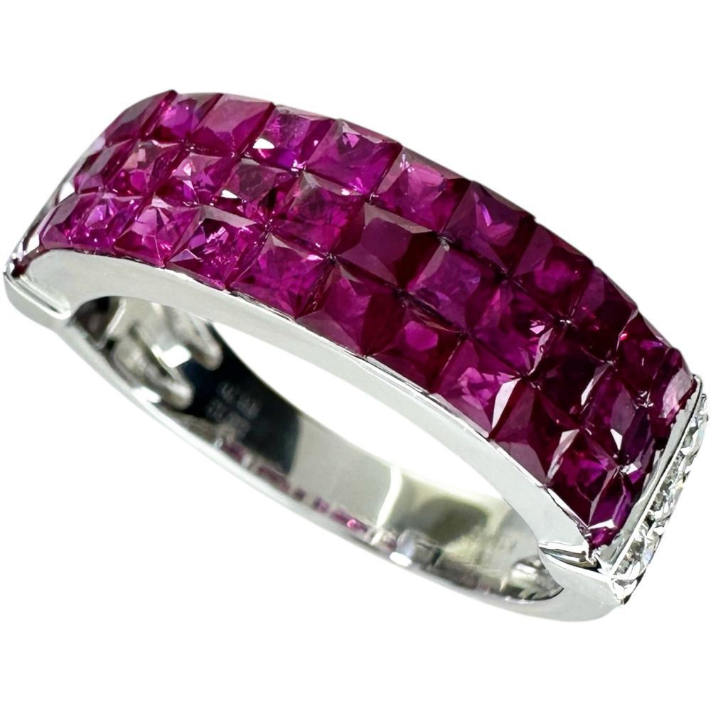 - 13号 ミステリーセッティングルビー 1.70ct ダイヤモンド 0.12ct リング・指輪 K18WGホワイトゴールド 4.5g レディース