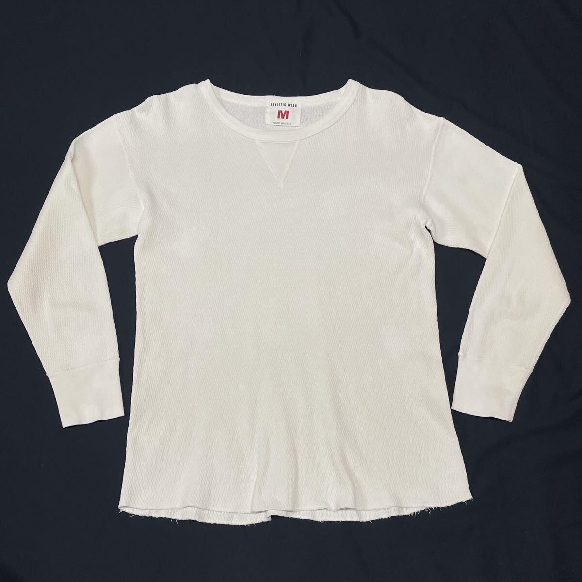 > ATHLETIC WEAR USA製 前V ガゼット ロンT アスレチックウェア サーマル 長袖Tシャツ MADE IN USA ホワイト 無地 白 単色 早5924