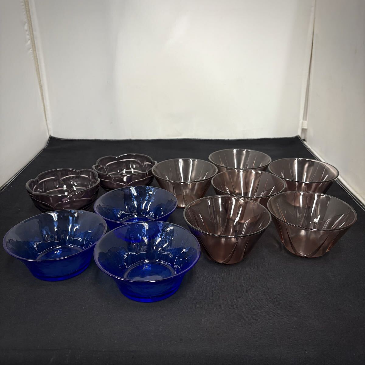 > 昭和レトロ 色ガラス 小鉢 10客セット そうめん鉢 ブルー パープル ヴィンテージ 和食器 (08107E