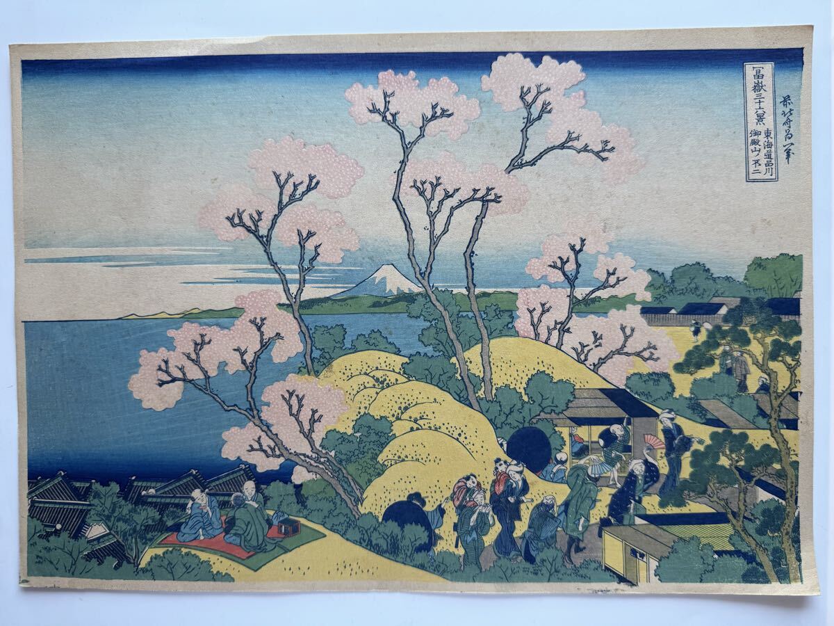 - 真作 明治大正期 初期高見澤木版 富嶽三十六景 『 品川御殿山な 』力強い擦りです。 浮世絵 木版画 葛飾北斎 名所絵 錦絵 約26×38cm