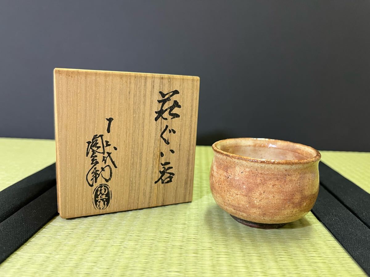 - 萩焼 十二代 田原陶兵衛 萩ぐい呑 酒器 共箱 日本工芸会 無形文化財保持者