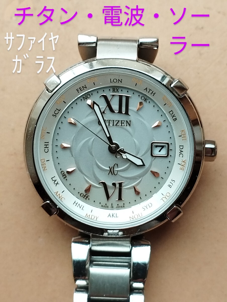 - AX50 シチズン・xC チタン・電波・ソーラー時計 日付・耐磁 サファイアガラス レディース