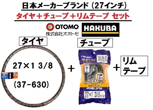 > 大分県 日本メーカーブランド 27インチタイヤ+チューブ+リムテープ セット!27×1 3/8(37-630) OTOMO HAKUBA オオトモ 肉厚