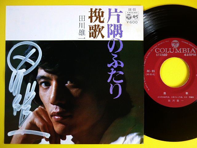 - EP◆田川雄一/挽歌/片隅のふたり AK-95【直筆サイン入り】◆作詞:石本美由起,作曲:上原げんと,編曲:小谷充,レコード 7インチ アナログ