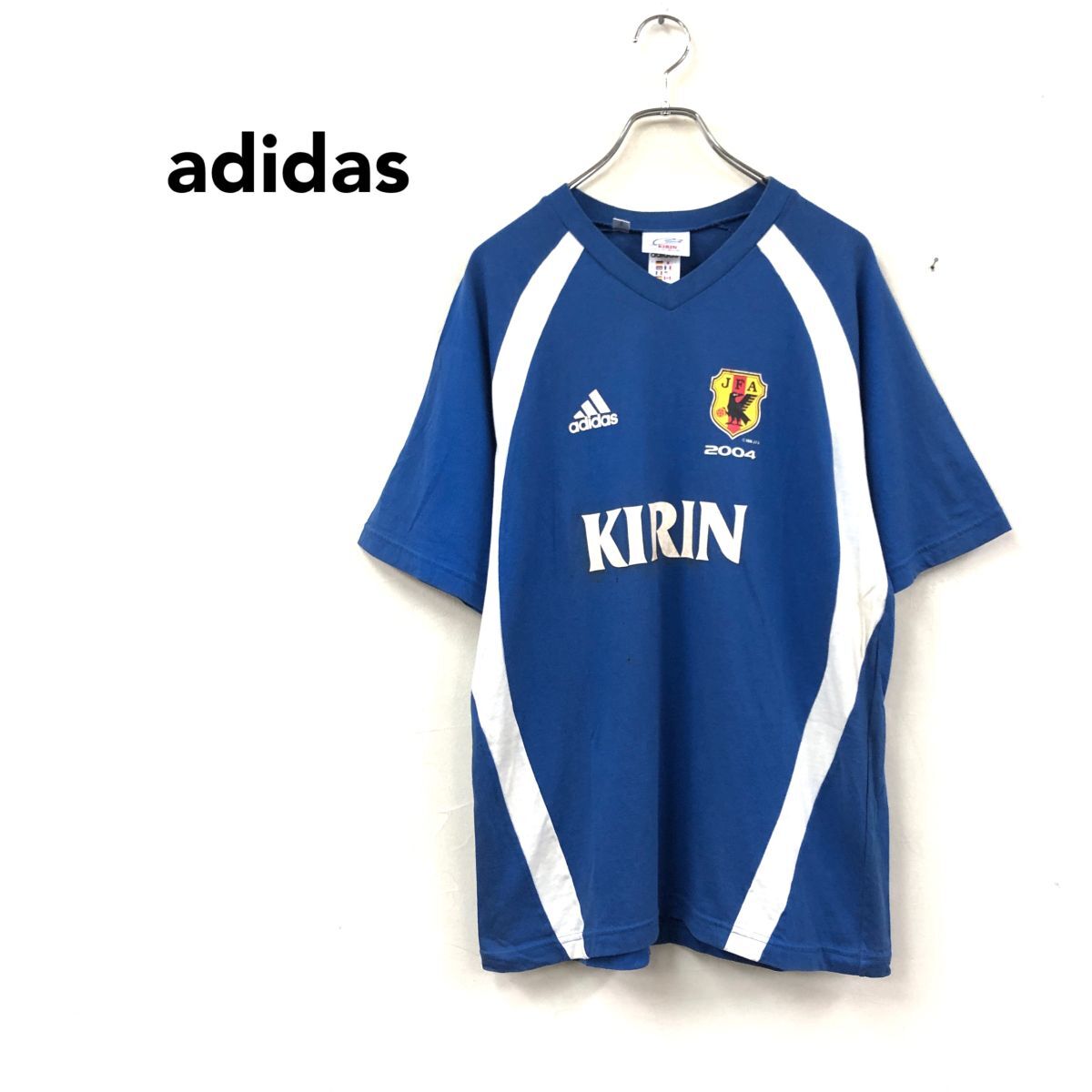 > 2H1588-Y-N◆adidas アディダス サッカー日本代表応援Tシャツ キリンチャレンジカップ2004 サイン入り JFA スポーツ ◆sizeL ブルー 綿