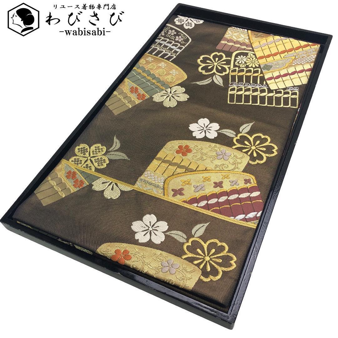 > 袋帯 西陣宮階織物 威毛 鎧威 花模様 証紙付 金銀糸 錆利休色 O-5343