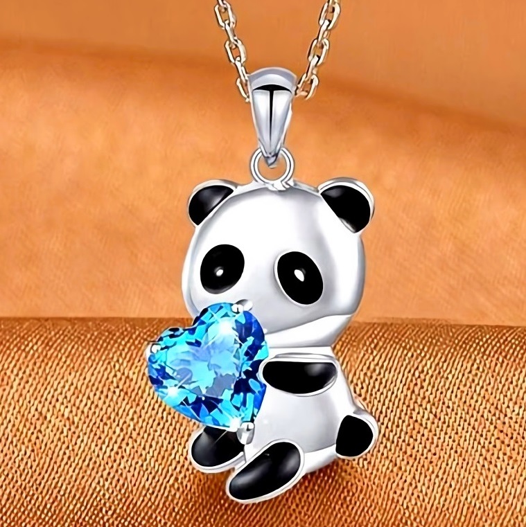 - 新品★送料無料★パンダの贈物ハート青空ブルートパーズ プラチナ仕上 925シルバーペンダント誕生日プレゼント旅行夏海ギフト国内発送