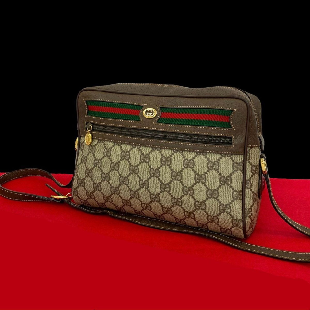 > ほぼ未使用 GUCCI グッチ オールドグッチ ヴィンテージ シェリーライン GG ロゴ 金具 レザー 本革 ショルダーバッグ ブラウン 27657
