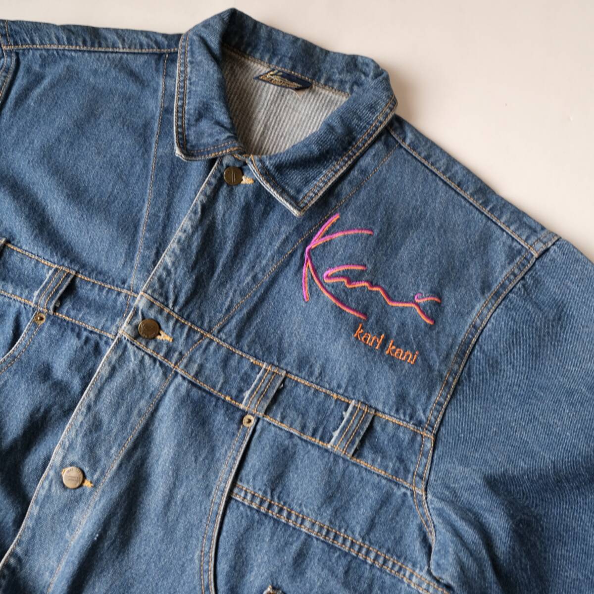 > 90s【 karl kani jeans 】カールカナイ ジーンズ ビンテージ USA製 S/S SHIRT デニム 半袖シャツ / インディゴ / L / old ジャケット