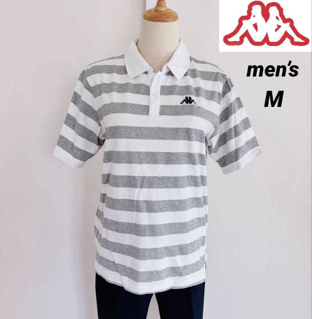 - Kappa カッパ メンズ ゴルフウェア 刺繍ロゴ ボーダー 半袖 ポロシャツ M