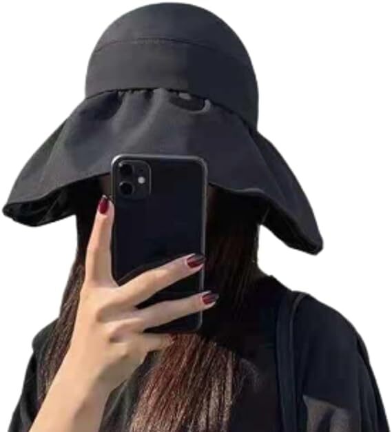 - 日よけ帽子折りたたみ帽子つば広レディースハット【ブラック】紫外線対策UVカットジョギングゴルフテニスレディース