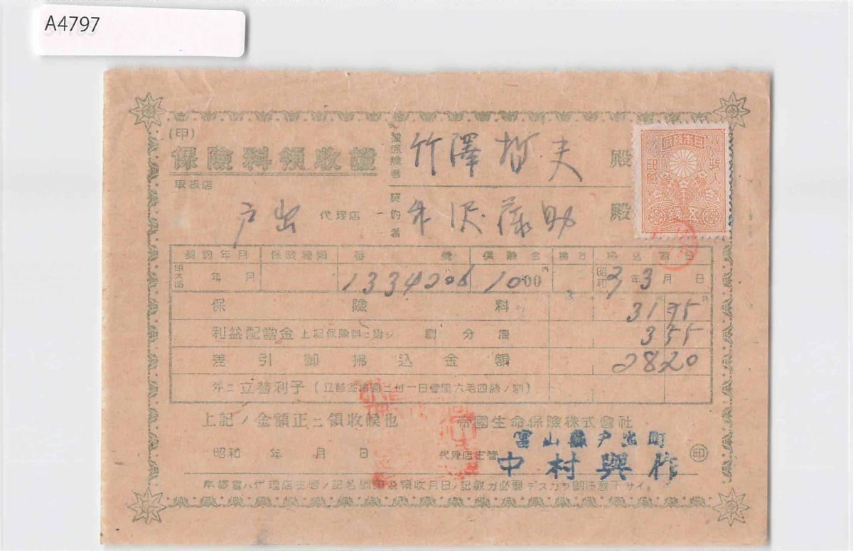 - *[令]日本 収入印紙貼付 使用例 領収書(1928) 収入証紙、切手[A4797]7p5