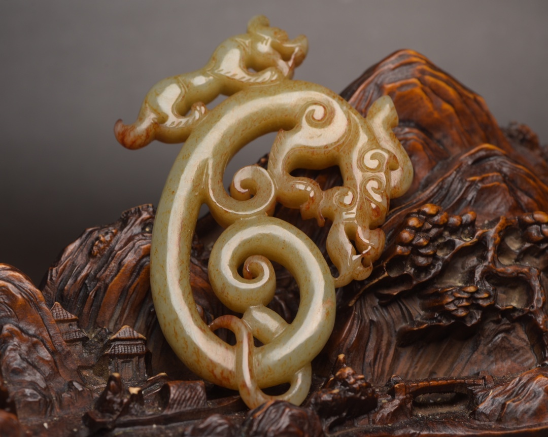- 旧 清代 和田玉 龍 玉牌 天然石 時代物 中国古美術 古賞物 古置物 唐物 S78