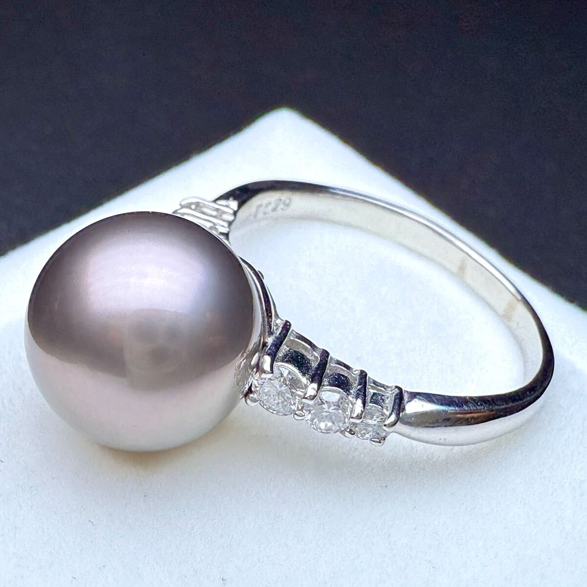 > 照り◎ ダイヤモンド 南洋黒蝶真珠 リング 指輪 11.32㎜ 16.5号 6.3g リアルパール 本真珠 Pt900 プラチナ D0.29ct 大珠