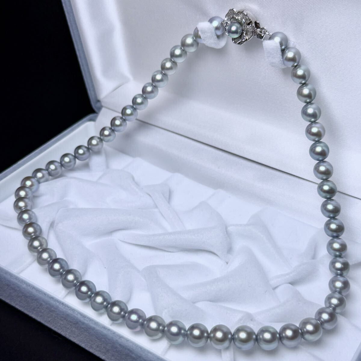 - 照り◎ アコヤ真珠 パール ネックレス ライトシルバーグレー 7.53〜8.11㎜ 43㎝ 38.0g 本真珠 SILVER刻印 pearl jewelry necklace
