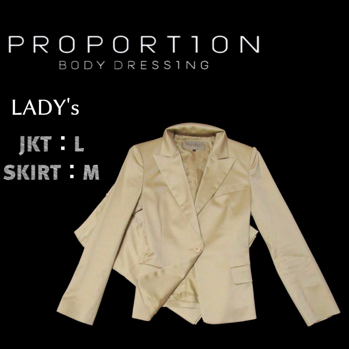 - 上L下M 美品◇PROPORTION BODY DRESSING◇春秋冬ミニスカートスーツ上下サイズ違い