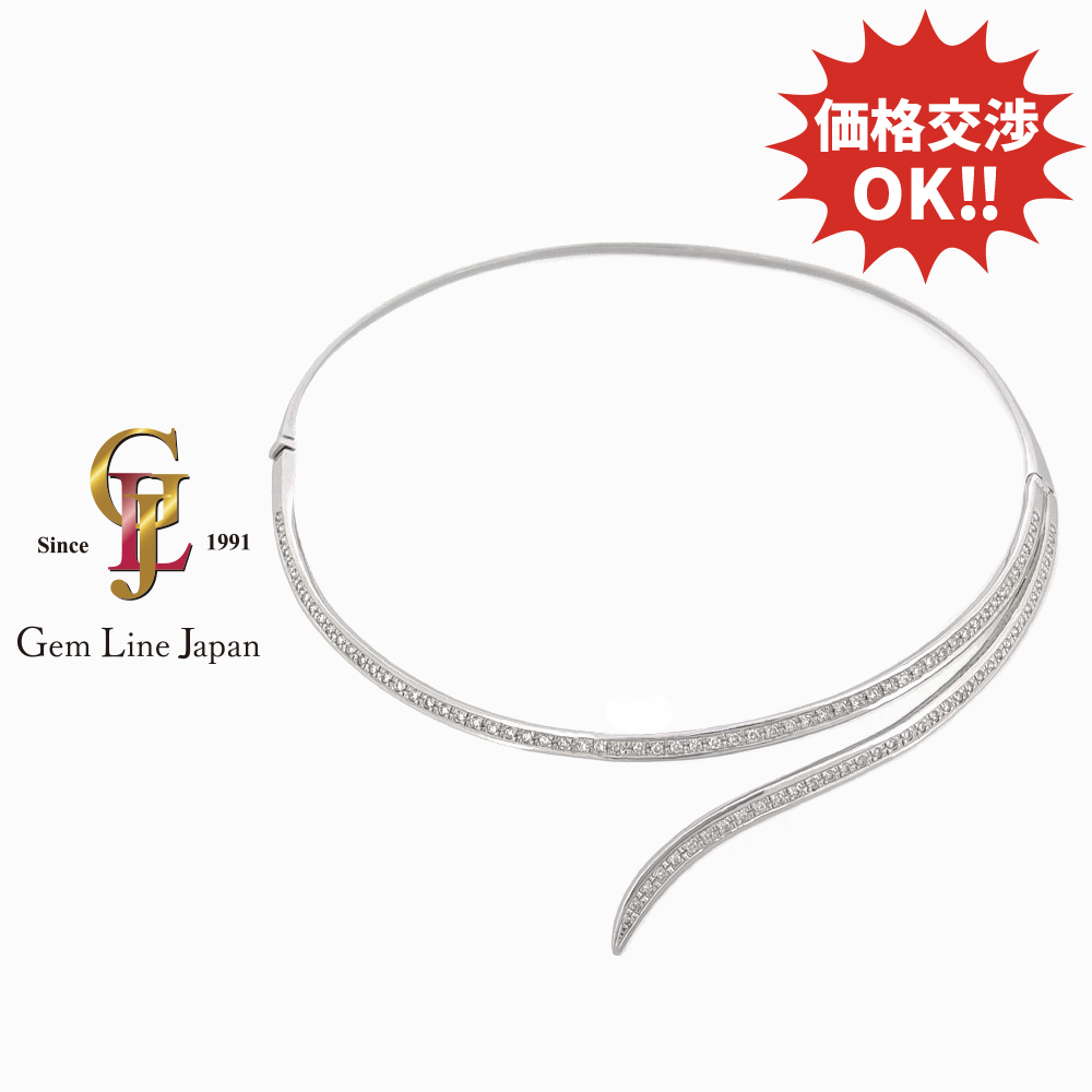 - K18WG オメガ チョーカー ネックレス ダイヤモンド 1.71ct