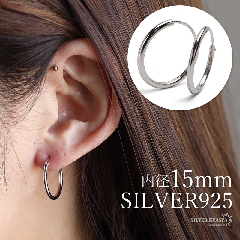 - シルバー925素材 フープピアス 2点セット 内径15mm シンプルピアス レディース シルバーピアス リングピアス 両耳