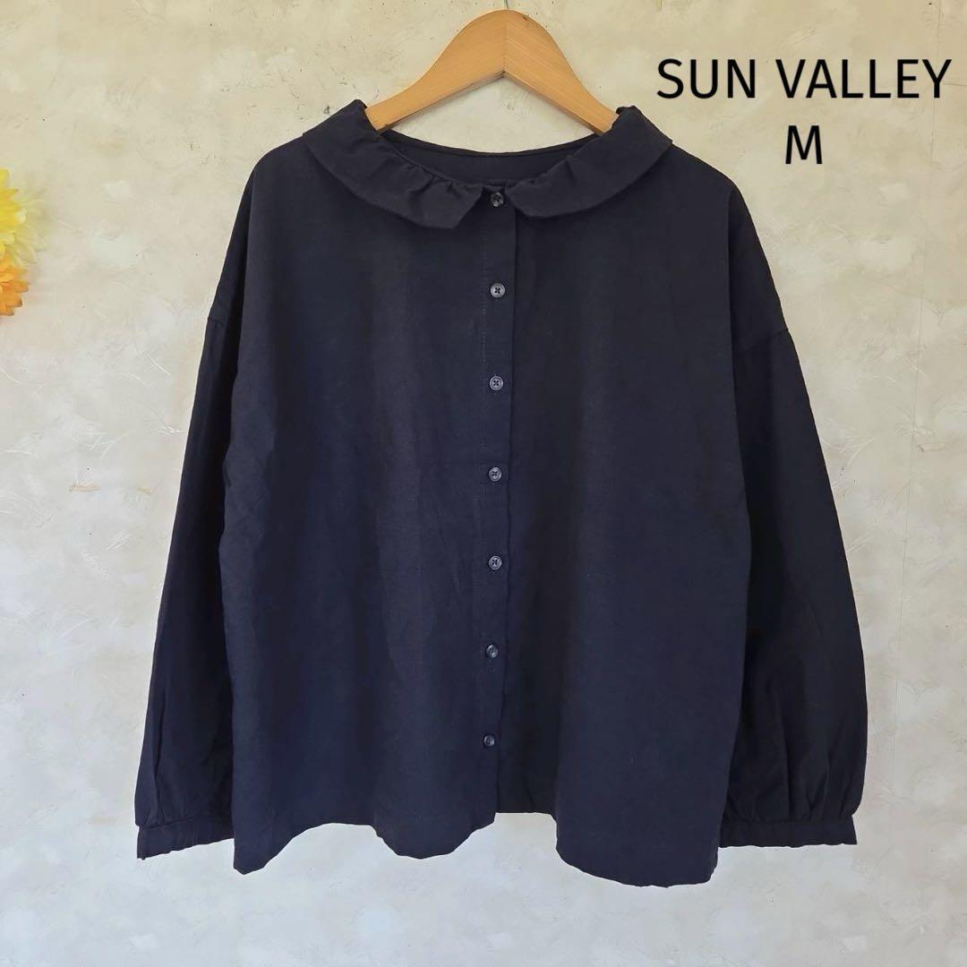 - サンバレー SUN VALLEY ブラウス M ネイビー 長袖 ラウンドカラー