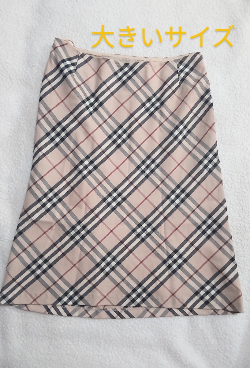 - 送料無料★バーバリーロンドン★大きいサイズ★11号 13号 L LL★チェック ミモレ丈スカート★膝丈スカート★美品★薄手ウール 膝下スカート