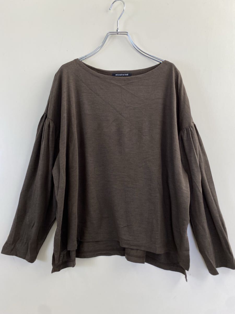 > ● mizuiroind ゆったり* オーバーサイズ ニットソー ブラウン ◆ アクリルウール ボートネック カットソー ミズイロインド ◆W5 Gや0BI-02