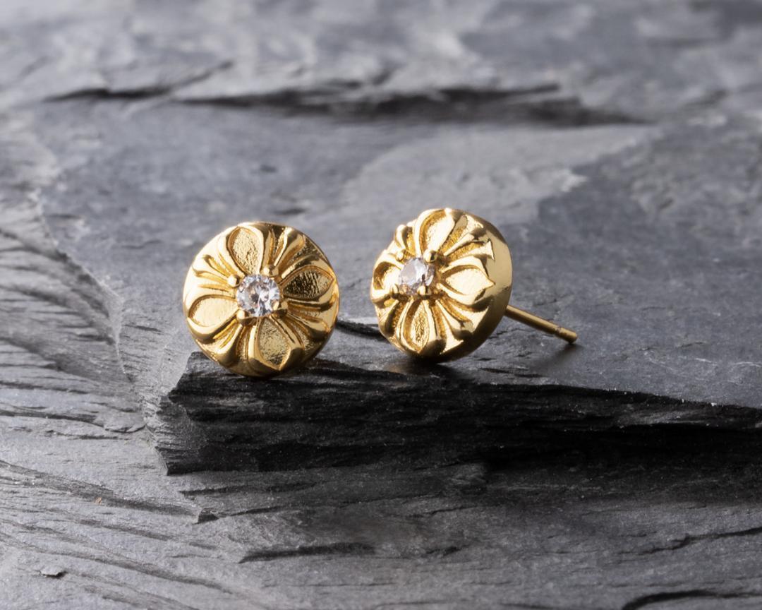 - ジルコニア付き ゴールドフレアピアス お洒落 両耳用 匿名配送 95