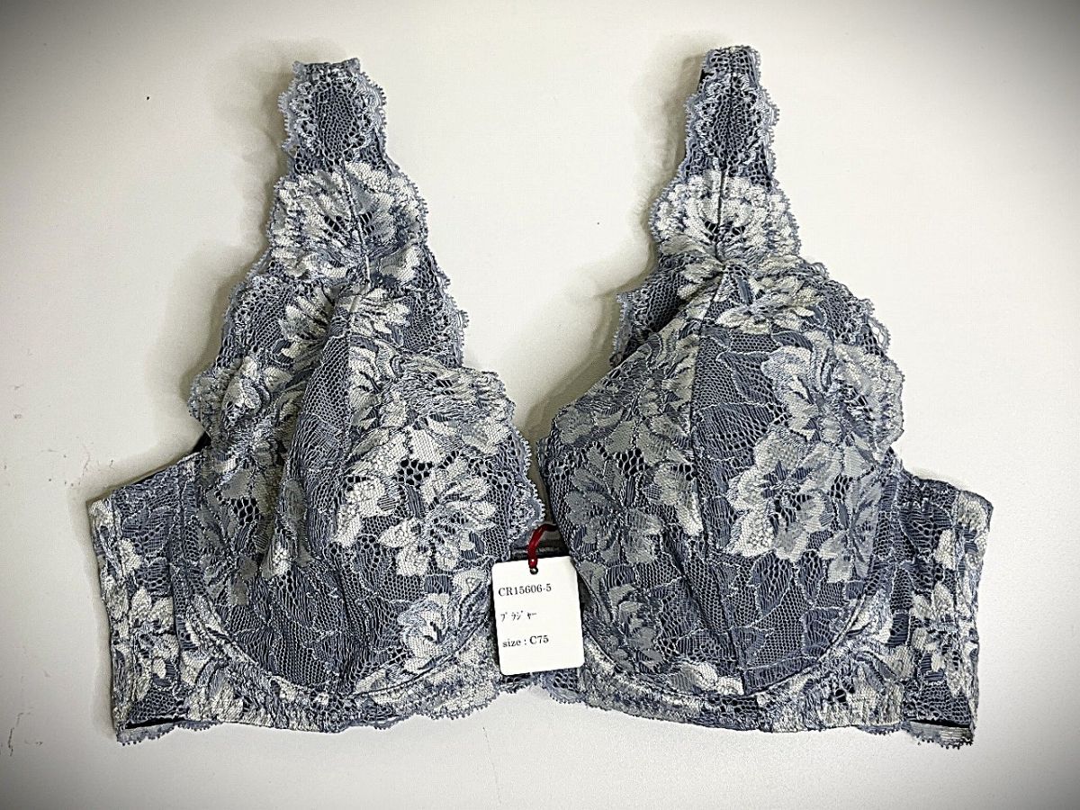 - <再値下げ>CR15606-5 IB⑦【特価】新品 ブラジャー C75 1枚 ブルーグレー レース 花柄 刺しゅう フルカップ ストレッチ レディース