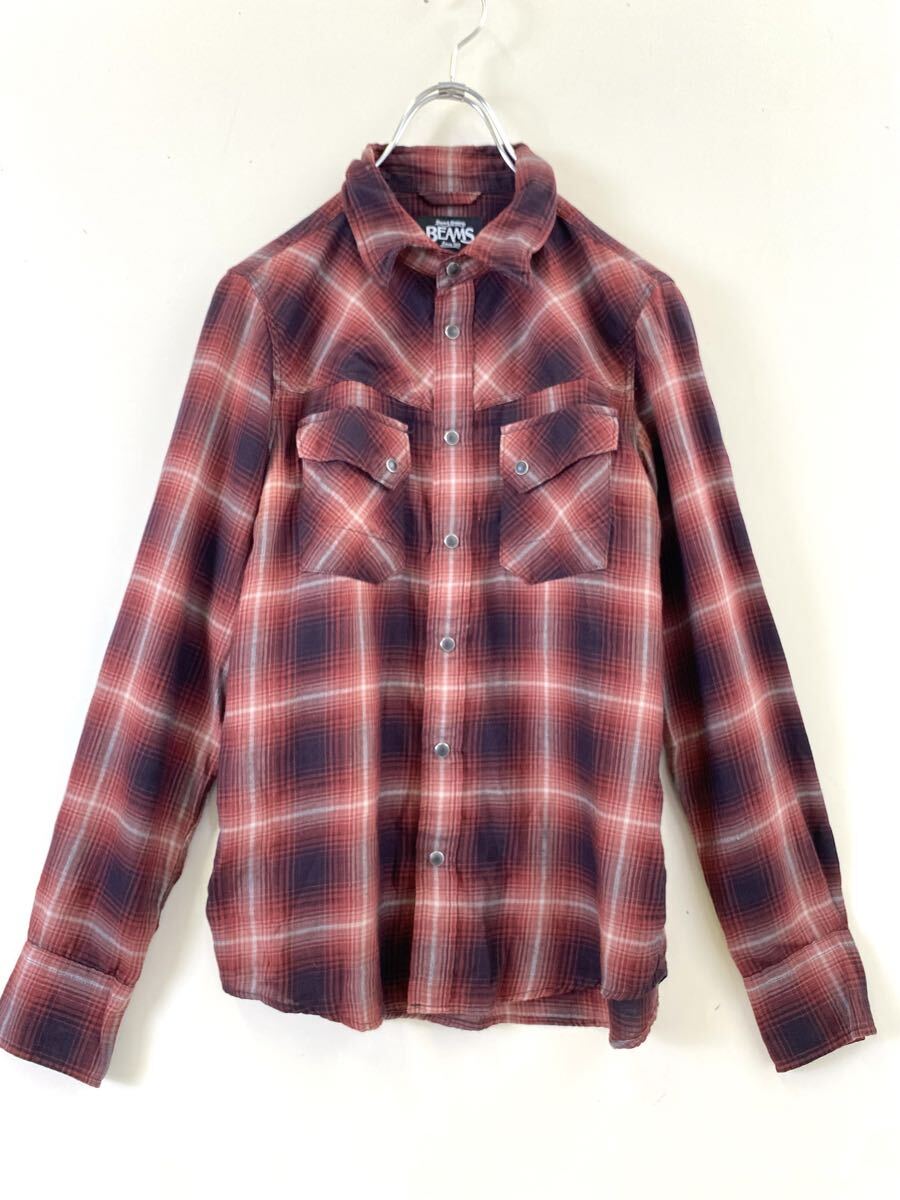 > ● BEAMS *襟ワイヤー入り* ウエスタンシャツ Dレッドチェック Sサイズ ◆ コットン 長袖シャツ ビームス ◆W21 Gや0BI-15