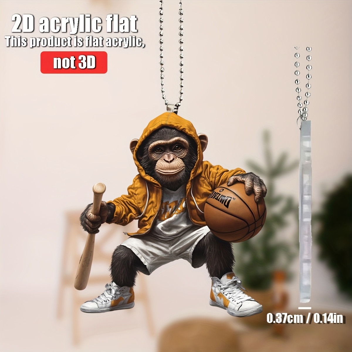 - キーホルダー やんちゃなチンパンジー アクリル 平面 2D 猿 バスケ 野球 動物 アクリル 8cm 車 バックミラー おしゃれ インテリア t7930