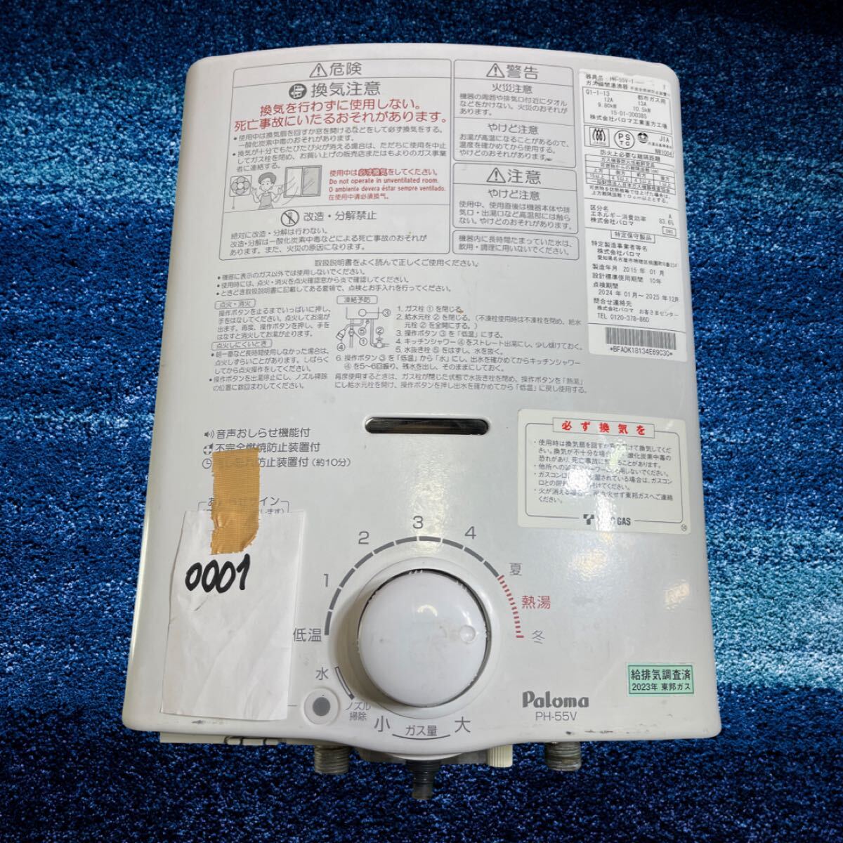 - (中古品)パロマ ガス瞬間湯沸し器、PH-55V-1、都市ガス用、2015年製。
