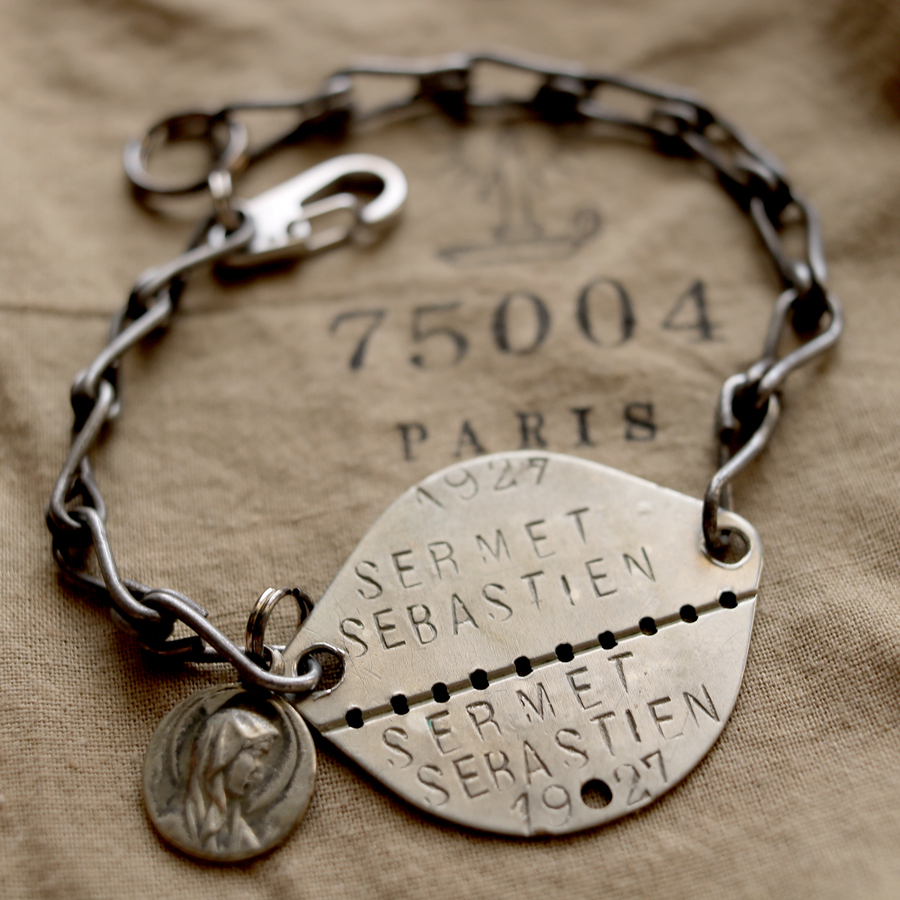 - 仏 1927年 フランスアンティーク ドッグタグ ブレスレット WW1 WW2 ビンテージ ミリタリー キリスト マリア メダイ フランス軍 プレート