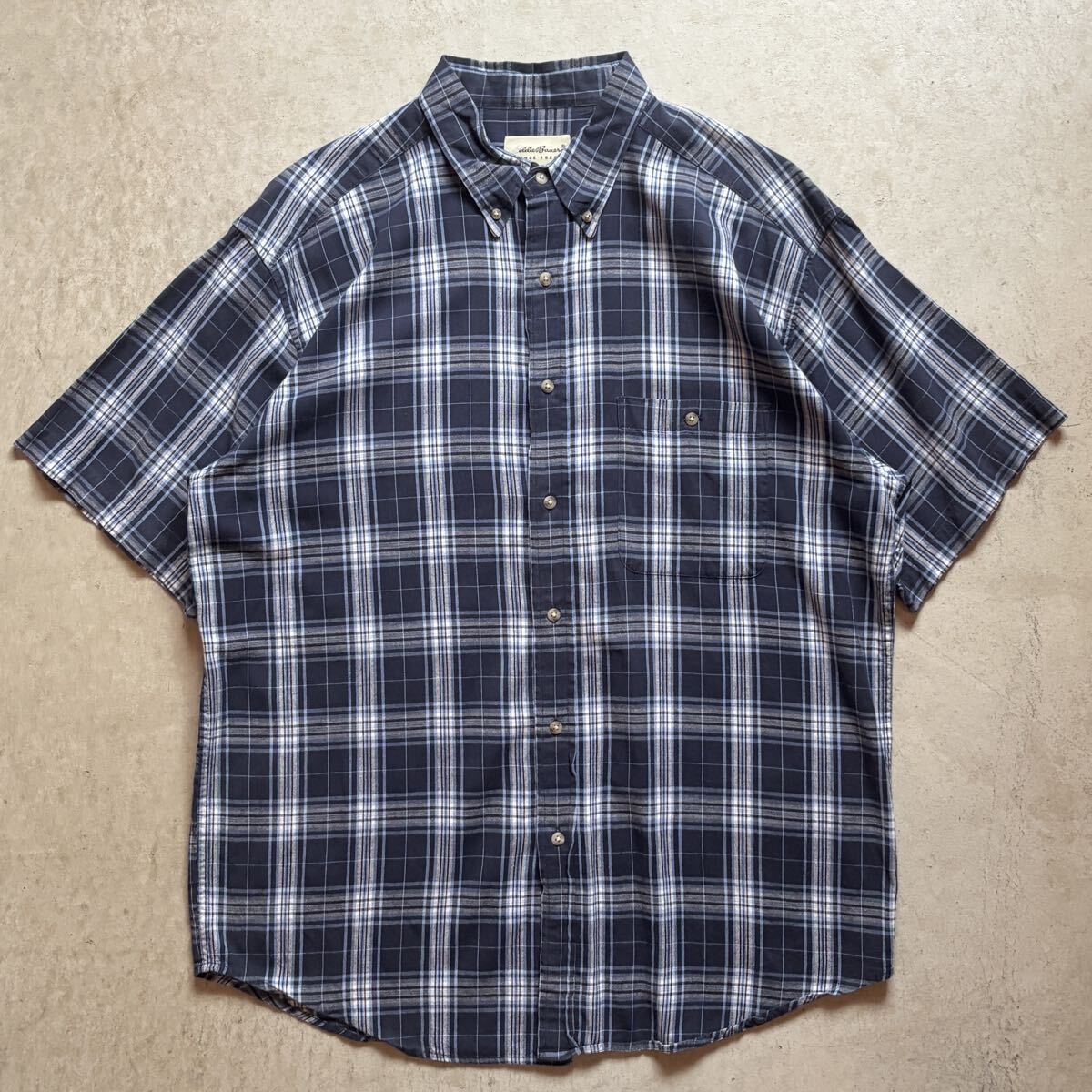 - 【90s】00s Eddie Bauer エディーバウアー ボタンダウン 半袖シャツ メンズ L 青/BLUE 紺/NAVY チェック コットン アウトドア vintage 正規