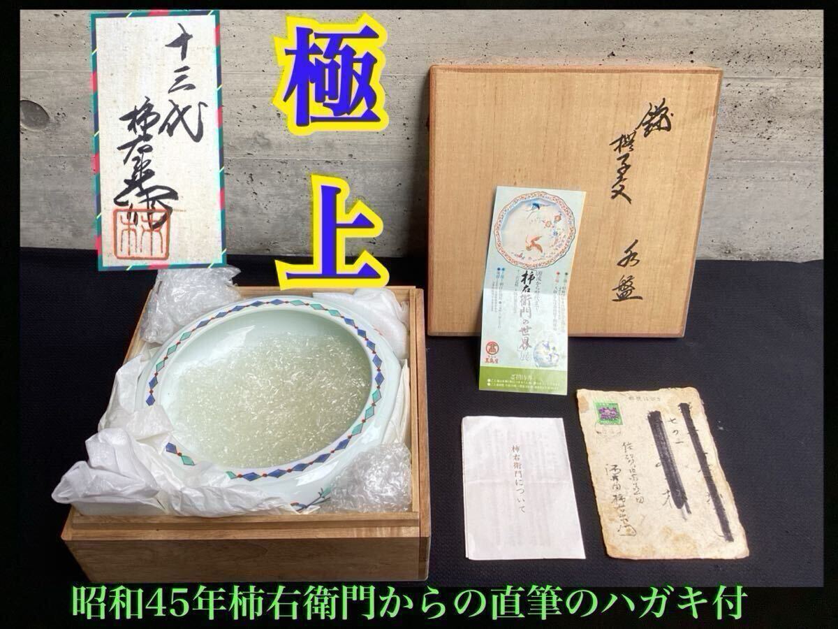 > ◆13代酒井田柿右衛門 【人間国宝】展示会にて ※柿右衛門本人より購入の菓子鉢 ★昭和45年の柿右衛門*直筆ハガキ付【友人でした】陶器 皿