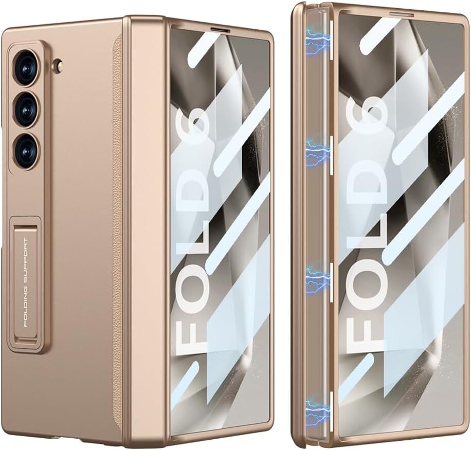 > Galaxy Z Fold6 ケース ガラスフィルム付きカバー Uovon スマホケース 薄型 (ゴールド)