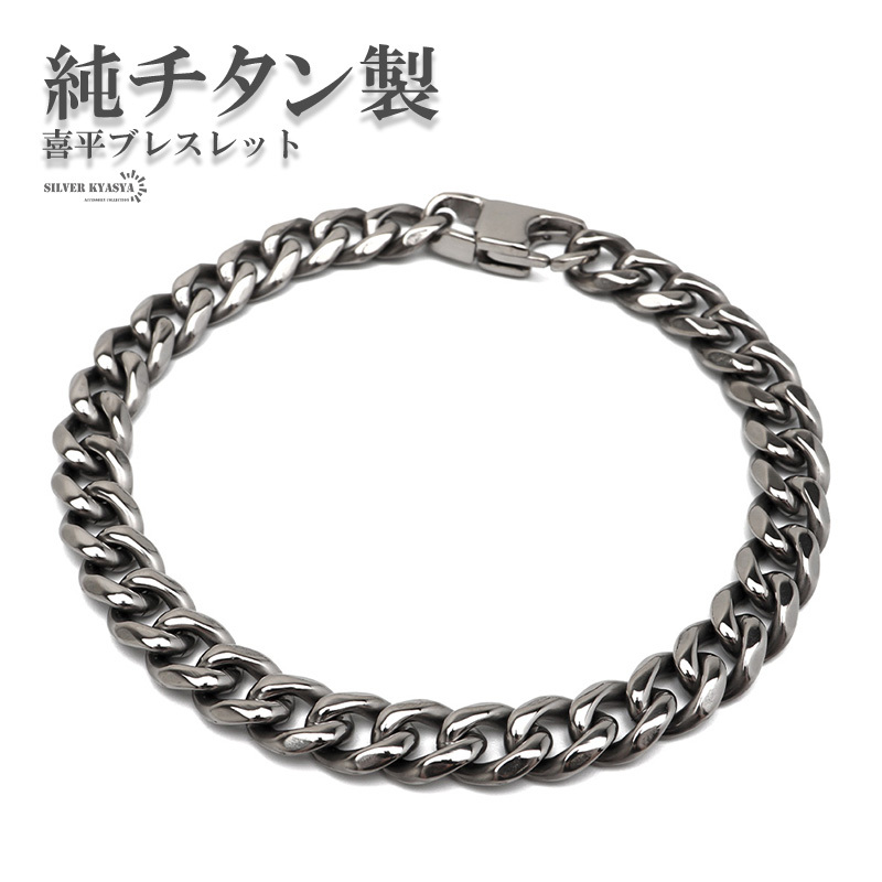 > (18cm) 純チタン製 軽い チェーンブレスレット 喜平ブレスレット シルバー なめらか カット面 丸み メンズ 金アレ対応