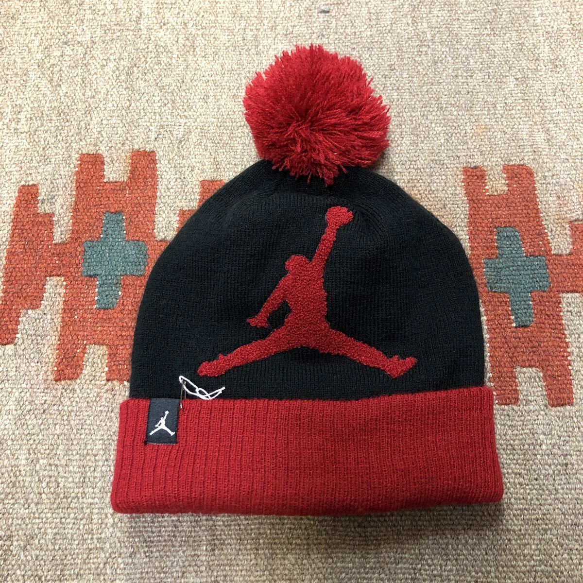 - JORDAN ジョーダン ニット帽 ニットキャップ ボンボン 黒赤 ビーニー